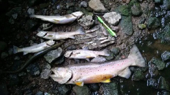 There was little the EA could do, even though they took a call from a Dymock stream-side resident within an hour of the spillage, probably caused by a catastrophic failure of the unit to which these things are remarkably prone. This external EA publication lists containment failures between 2010-2013 and raises their concerns about risks to the environment. The killer content of this type of effluent is undissolved ammonia with readings of 0.25 causing distress to fish and invertebrates. Our little river of death was carrying readings of 5.2. The plug of pollution worked its way painfully down the water course via the Preston Brook and into the Leadon taking 24 hours to arrive at Ketford just upstream of our Cutt Mill section. The EA were surprised at how long it took to work downstream but their normal remedy for this type of pollution; to pump in freshwater, was not readily available nor in practise particularly effective against ammonia.